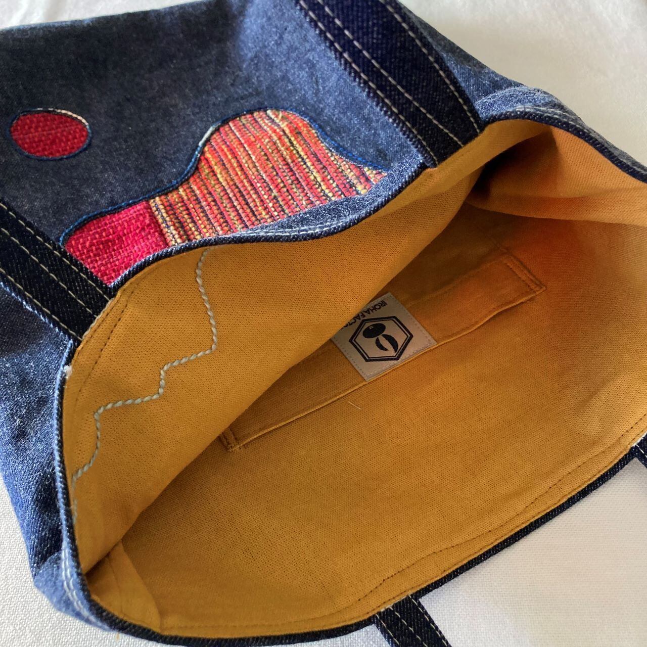 A4ぴったりバッグDECO a4dd002 紺デニム×赤系アメーバパッチ