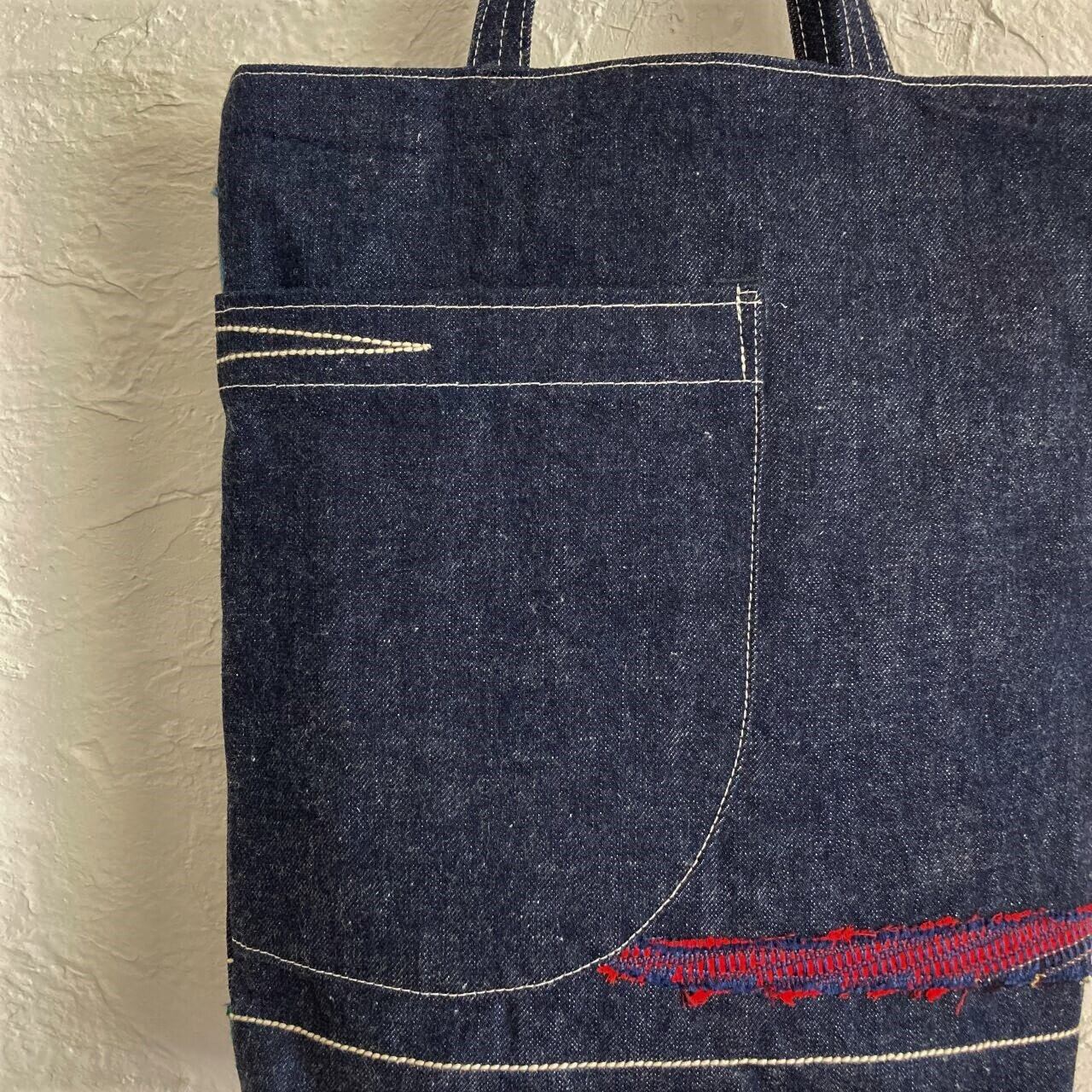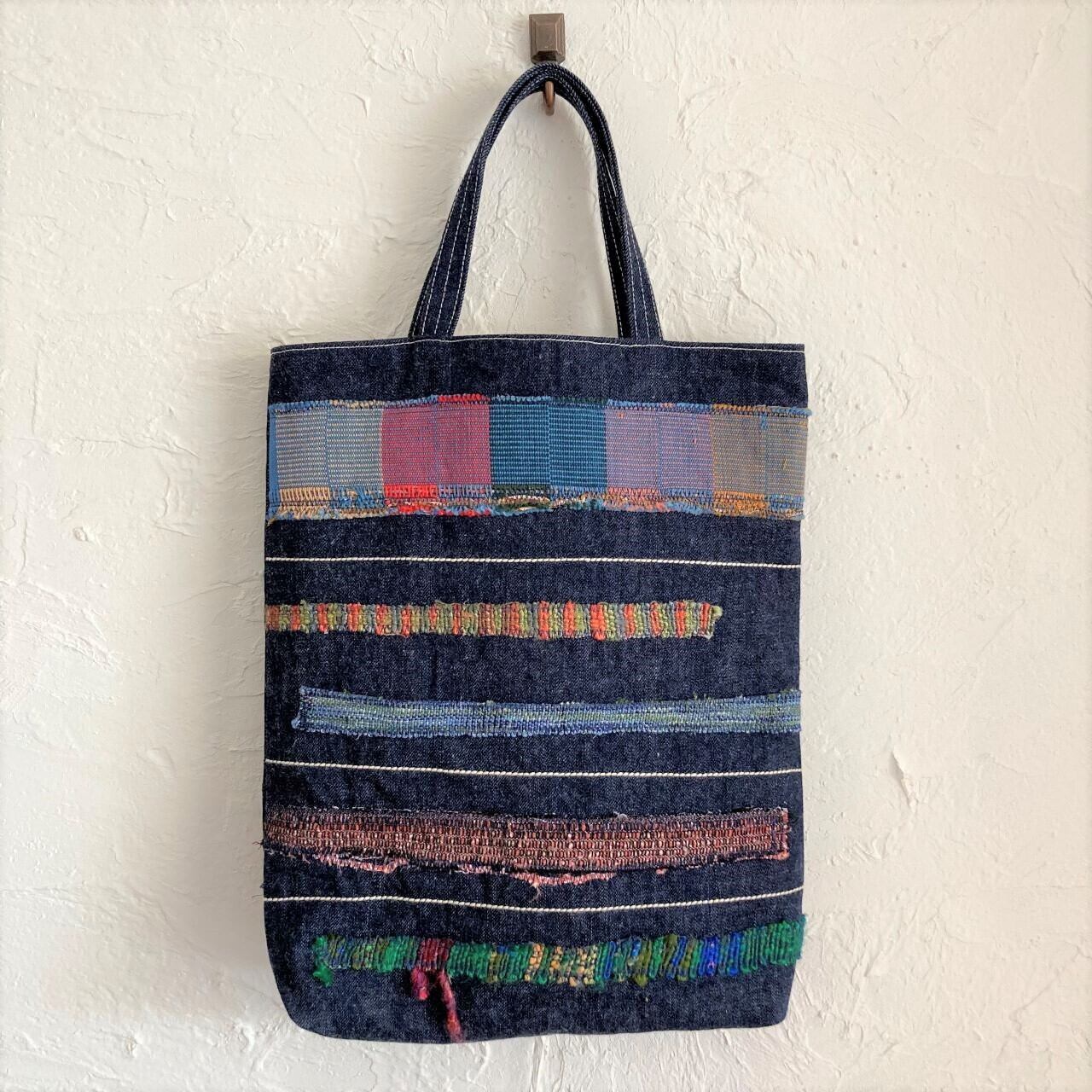 A4ぴったりバッグDECO a4dd004 紺デニム×色々パッチボーダー