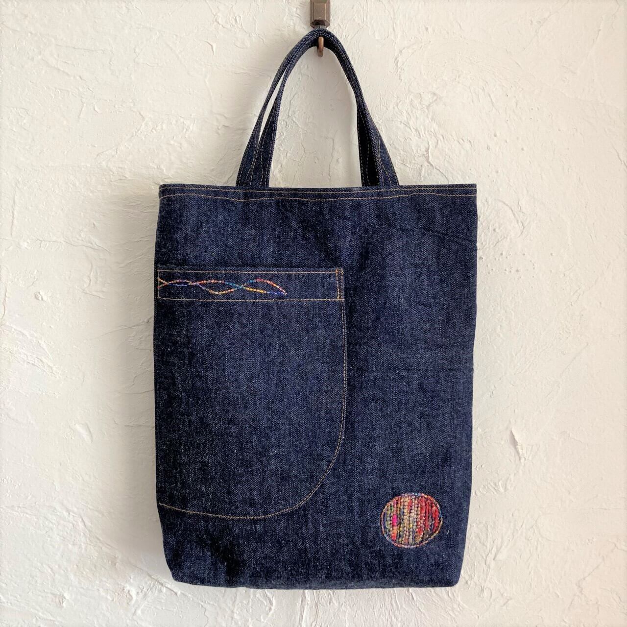 A4ぴったりバッグDECO a4dd006 紺デニム×色々パッチ丸