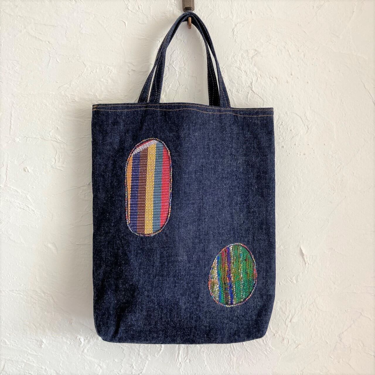 国産のデニムに、手織生地でデザインを入れました。