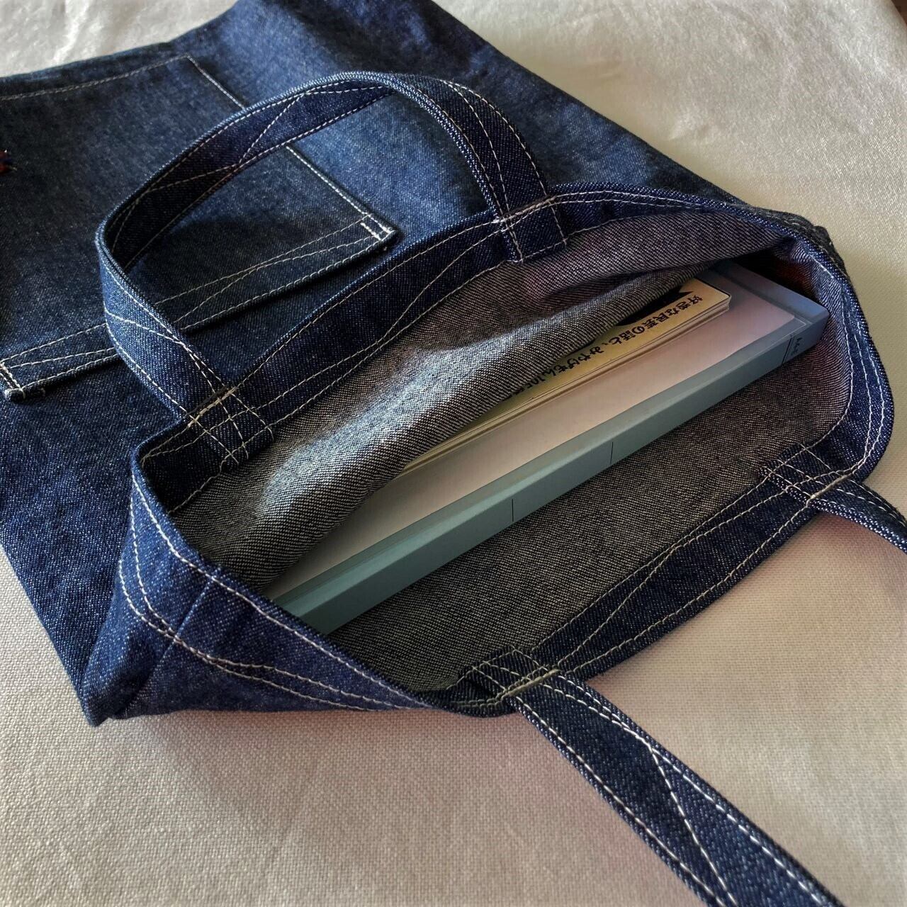 デニム生地でバッグにたたんでちょっと入れられる裏地無し仕様。
