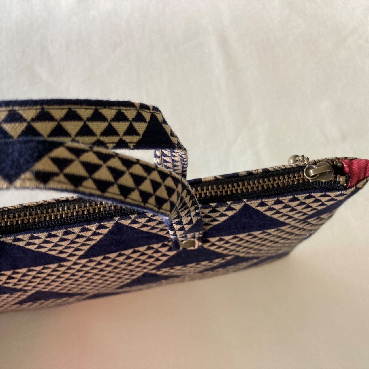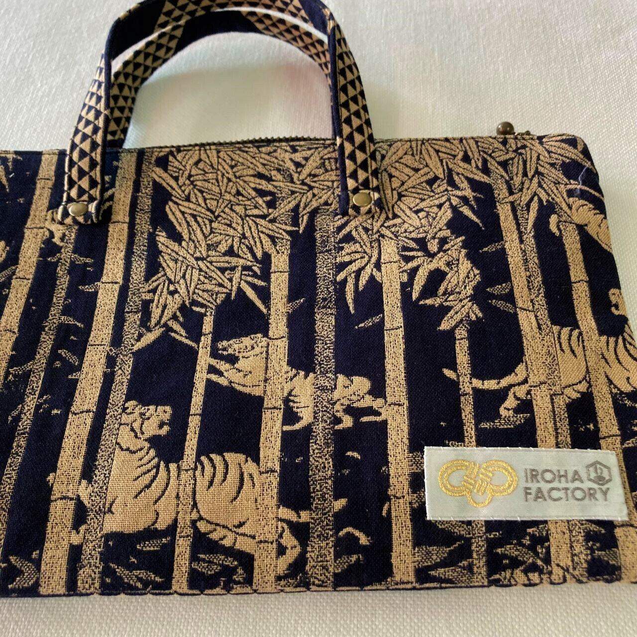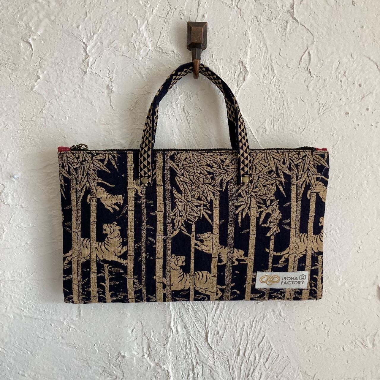 オマモリバッグ 西陣織<寅> 紺 竹林の虎×鱗柄 one001