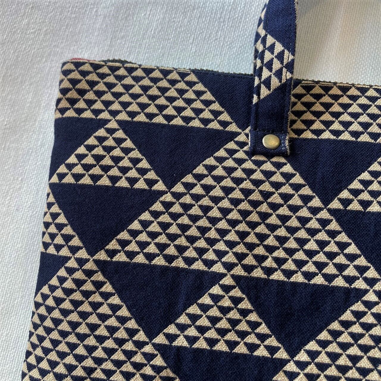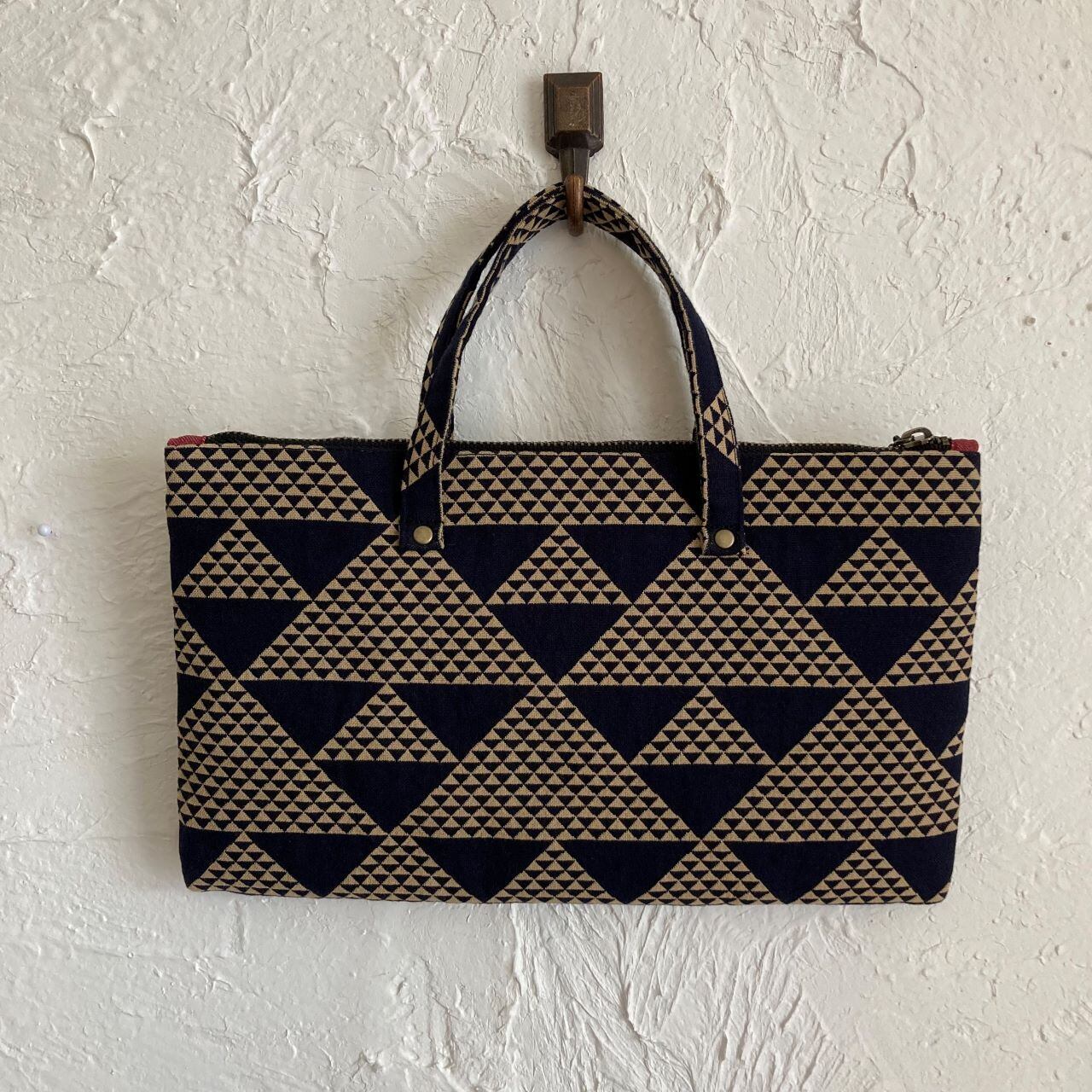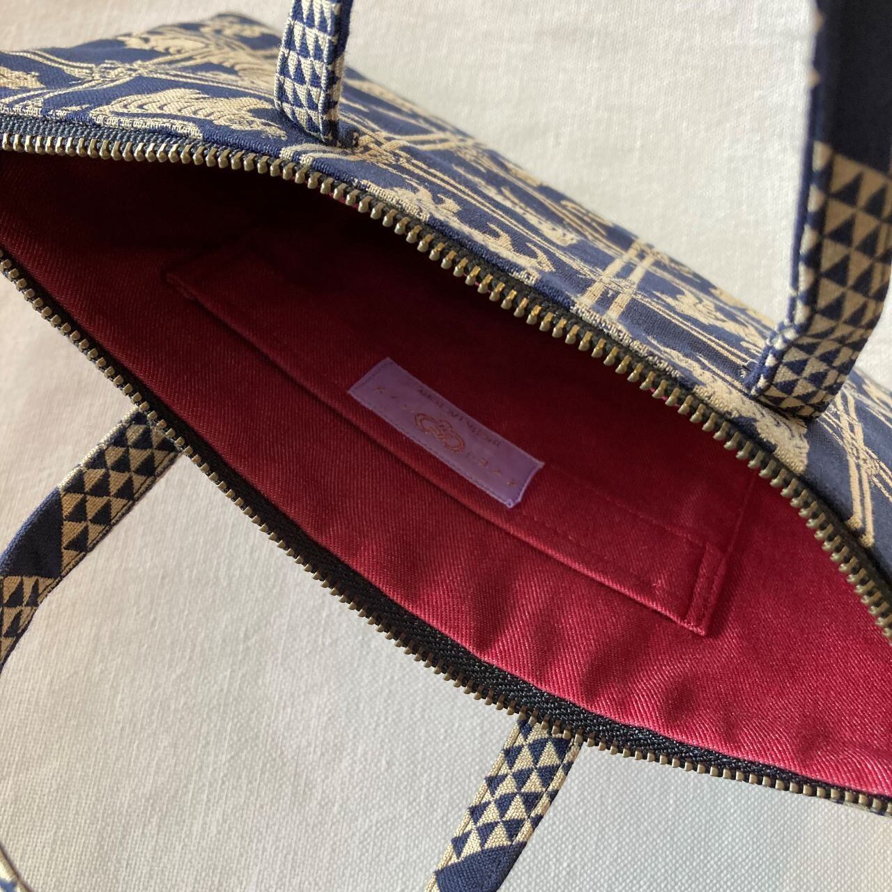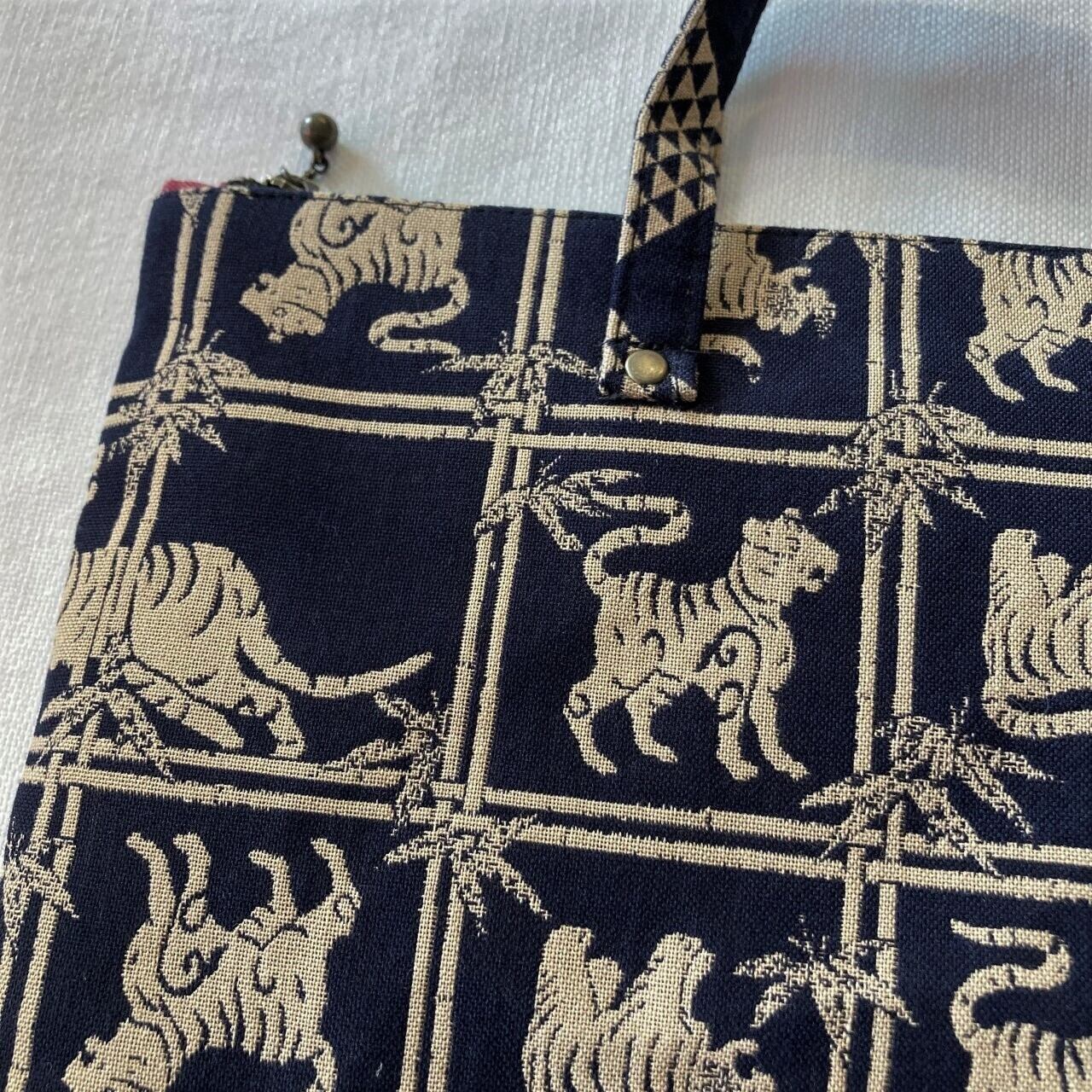 オマモリバッグ 西陣織<寅> 紺 竹格子に虎×鱗柄 one002
