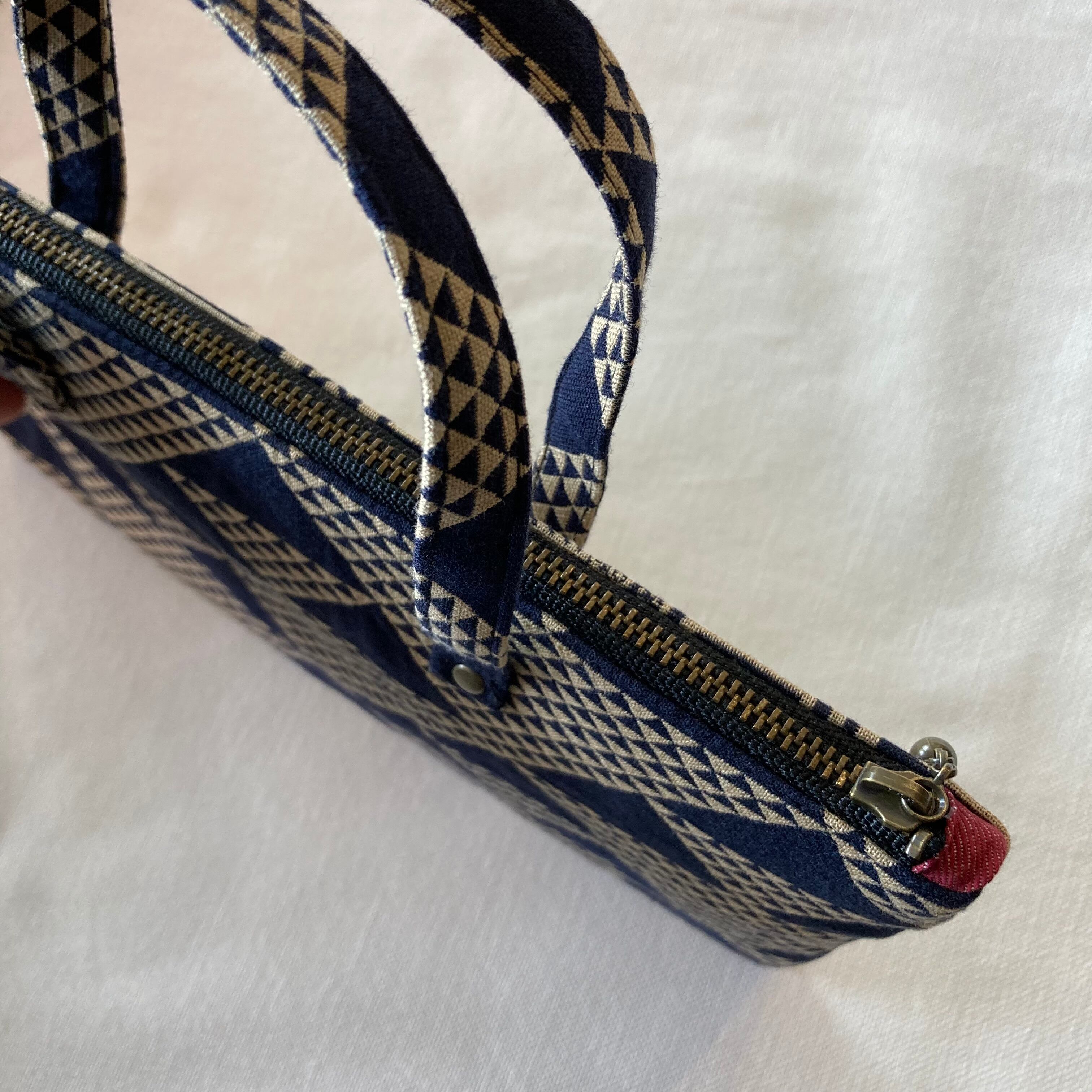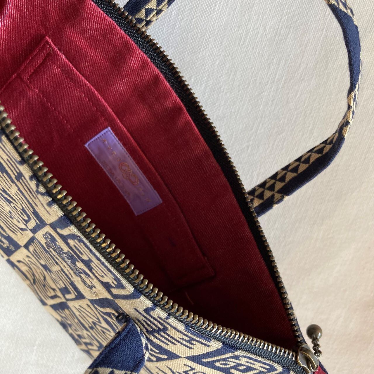 オマモリバッグ 西陣織<寅> 紺 百寿に虎×鱗柄 one003